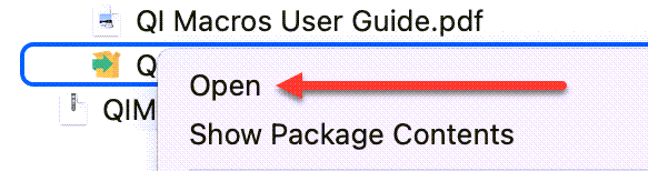 - Open the QIMacros folder, then the Mac folder, and double-click the “QIMacrosMac.zip” file: